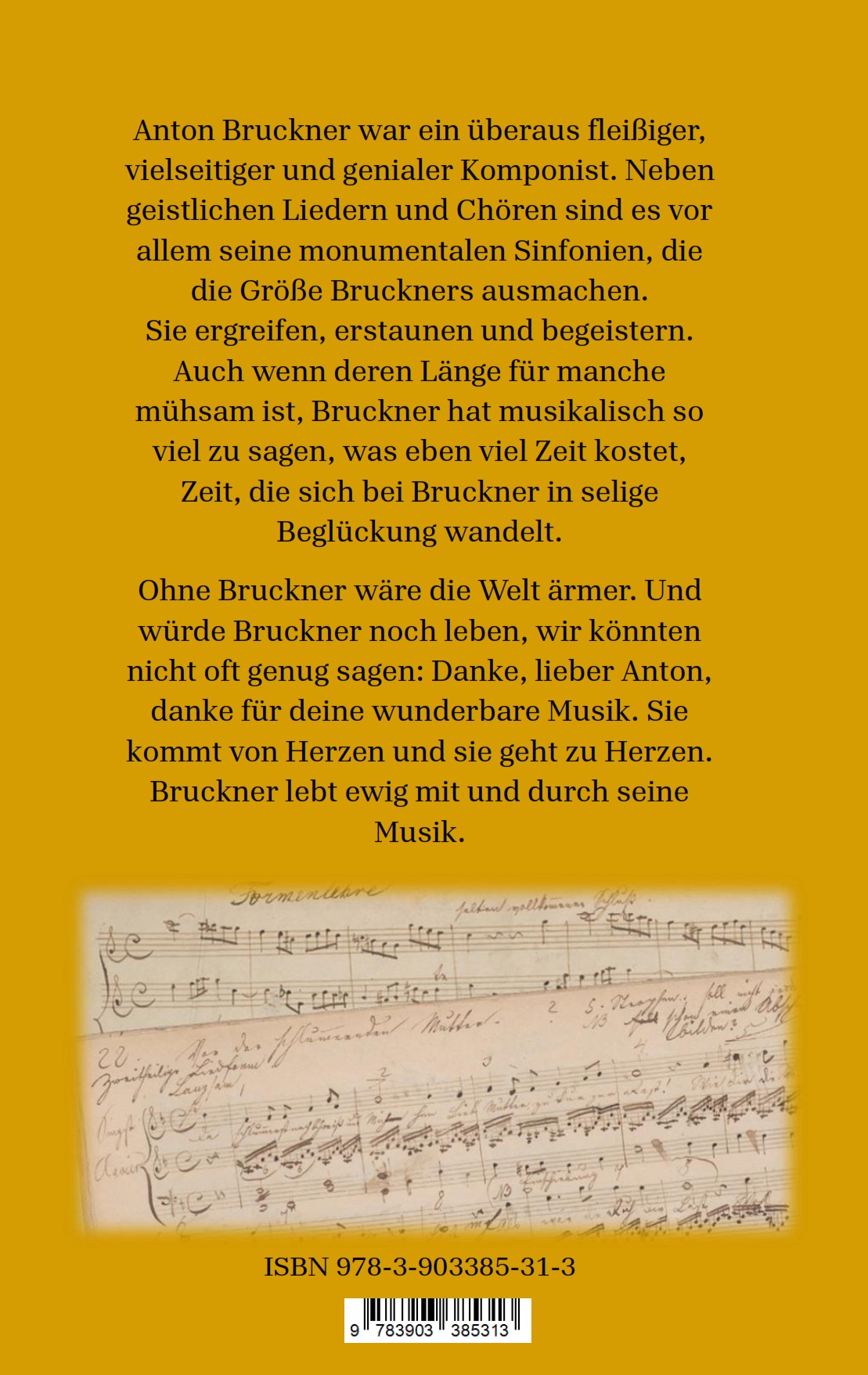 Ohne Bruckner wäre die Welt ärmer. Und würde Bruckner noch leben, wir könnten nicht oft genug sagen: Danke, lieber Anton, danke für deine wunderbare Musik. Sie kommt von Herzen und sie geht zu Herzen. Bruckner lebt ewig mit und durch seine Musik.